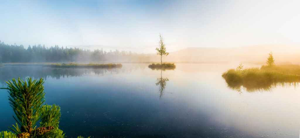 The largest peat pond in the Czech Republic -Chalupská slat lies in the shallow valley of the Vydří Brook at an altitude of 910 m, north of Borová Lada. Around the largest peat lake in the Czech Republic grow peat clover, spruces, pine trees, and dry pine. A short nature trail leads to the pond, where floating islands are formed, across the peat bog.